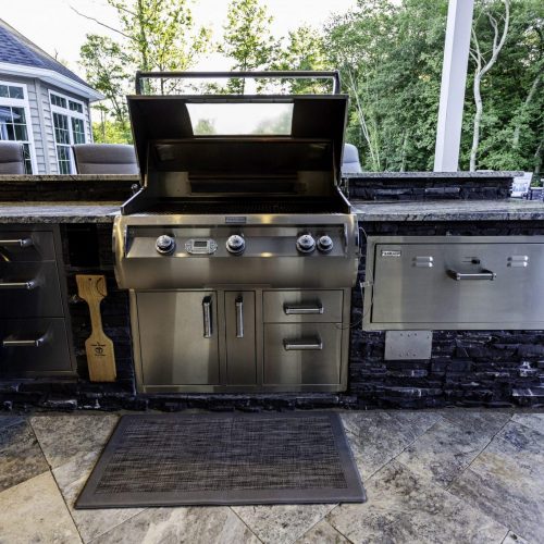 Whether you make a mean margarita, love to relax with a glass of wine, or craft beer is more your thing, we can design a bar area for your outside kitchen that meets your requirements. Why not add a built-in barbecue, for the ultimate outdoor cooking experience? We use custom grills by Fire Magic, Twin Eagles, Delta Heat and AOG, with the option of side burners that enable you to cook everything outside. With granite countertops, outdoor sinks, pizza ovens and kegerators to choose from, you’re spoiled for choice.