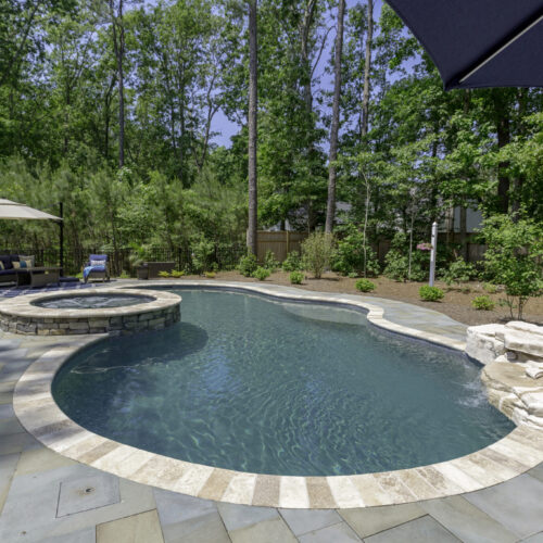 Our freeform pools are constructed from a range of materials including gunite, a type of concrete spray that lends itself well to creative designs while being able to withstand harsh Delaware winters.